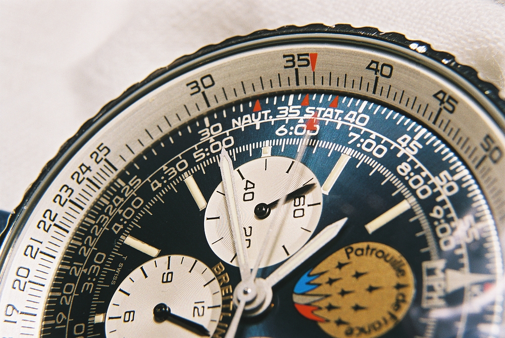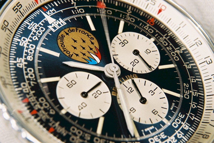 Le logo Patrouille de France se discute, mais il fait indeniablement partie de l'histoire de Breitling. Il équilibre néanmoins ce cadran |