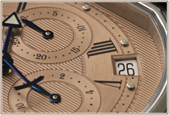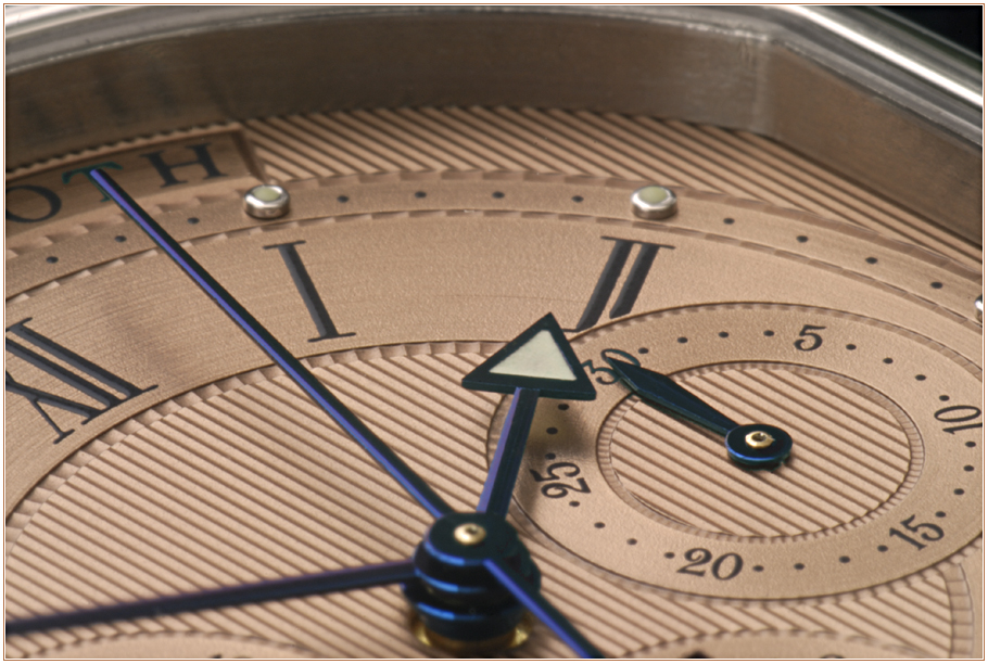 cadran, cuivré, très ouvragé, très équilibré. Suivant les moments, on restera accroché par sa complexité et sa beauté, en s'arrêtant sur ses nombreux détails, ou on sera charmé par sa classe, sa discrétion, son élégance. |