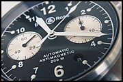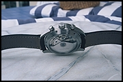 Seul le centre des compteurs est guilloché. La couleur nacrée est très douce, donnant beaucoup de classe au cadran. A voir de ses yeux, car la pellicule ici ne rend pas du tout hommage à la montre ! | |