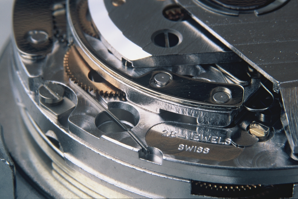 d'un saphir. Le 7750 est décoré. Côtes de Genève sur le rotor, le pont de centrale, Perlage de la platine. Finition soignée des cames et pièces Vis bleuies par traitement chimique. |